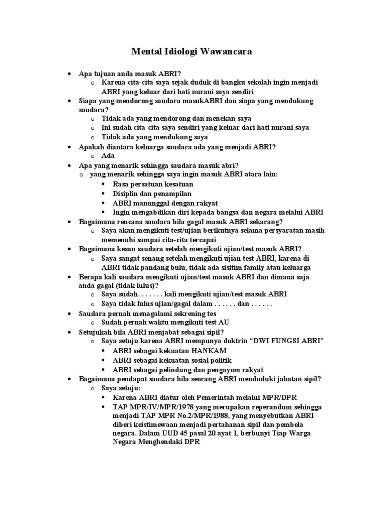Check spelling or type a new query. Soal tes mental ideologi tni ad. We did not find results for: Maybe you would like to learn more about one of these?